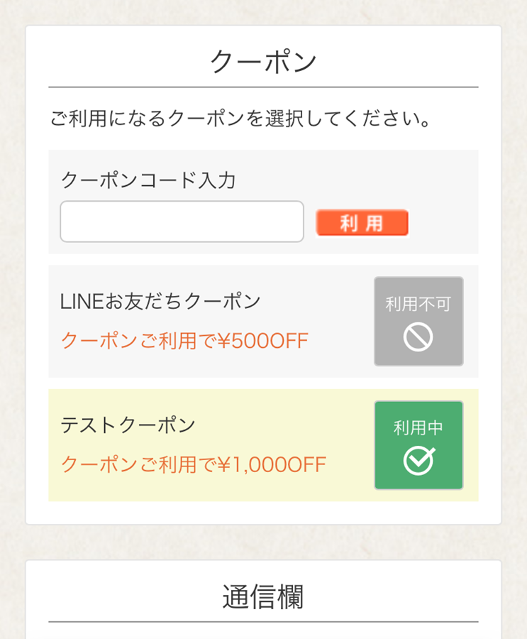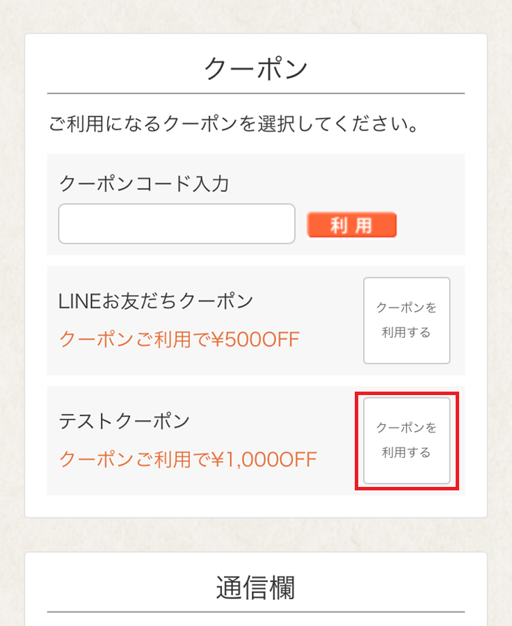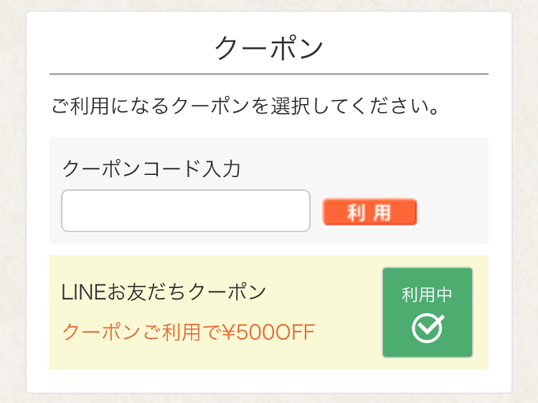- 「利用」を選択するとクーポンの取得と適用が一度に完了します。