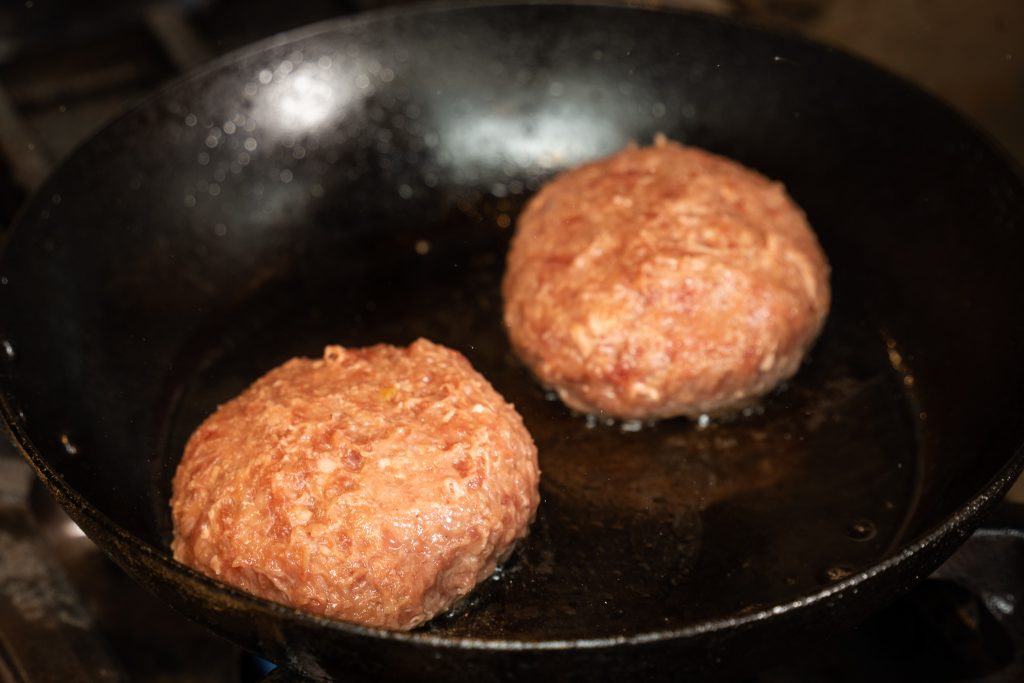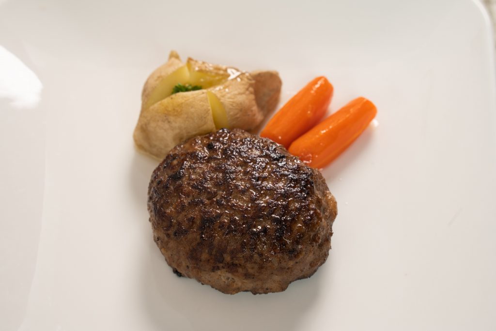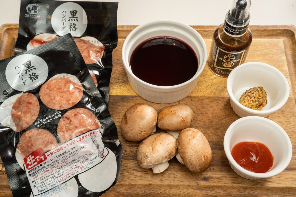 - 黒格ハンバーグは、パッケージ記載の焼き方で焼く。