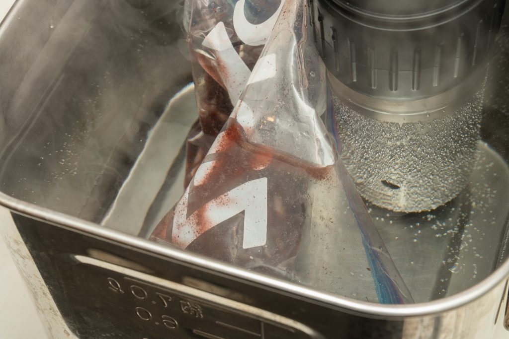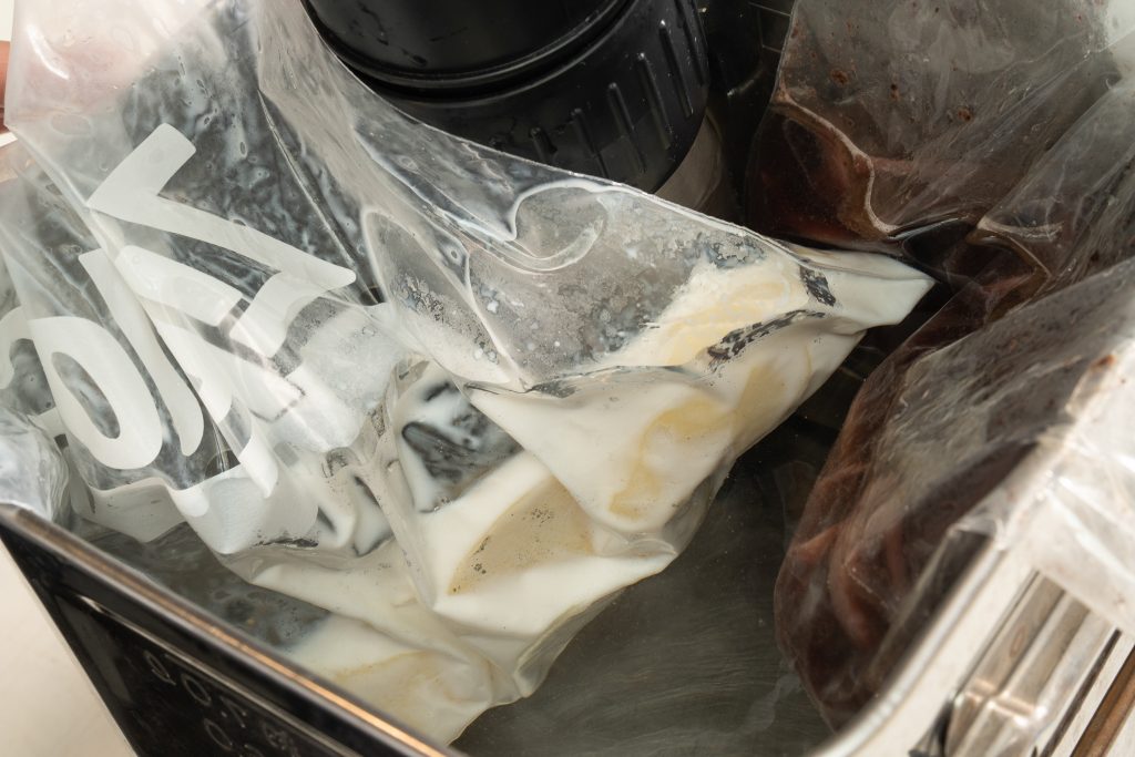 - お肉のフリーザーパックを、90℃で1時間半加熱する。