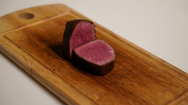 3センチくらいの位の厚みのお肉なら、一つの面を2分ずつ全6面焼く工程を、2回行うのがおおよその目安です。
