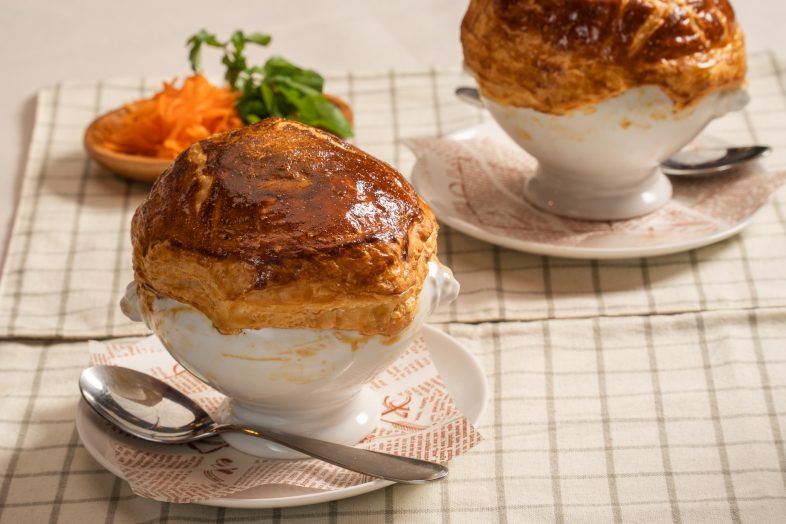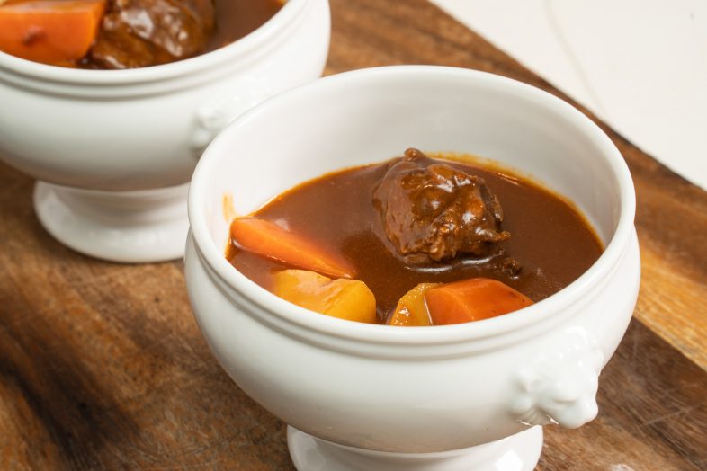 黒毛和牛の「ネック」でビーフシチューを作れば、強い旨味が溶け込んで、レストランで出てくるような美味しさ!サクサクのパイを崩しながら、食感に変化を出しつつお召し上がりください。