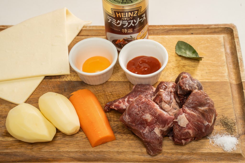 食感にお肉の主張がしっかりしていて、パリパリのパイ生地と相まってすっごく食べ応えがあります。牛スジやスネ肉で作るより食べた感じがありますね。/作った方;大倉照結 さん