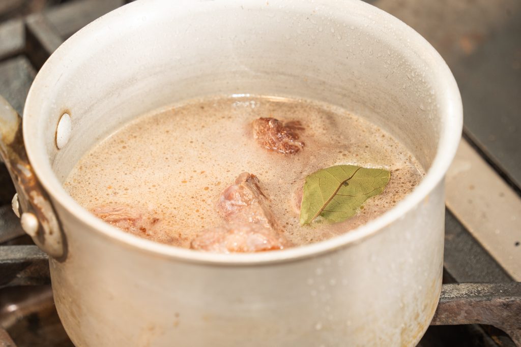 - 鍋に移したらひたひたになる位のお水を加え、柔らかくなるまで煮る。