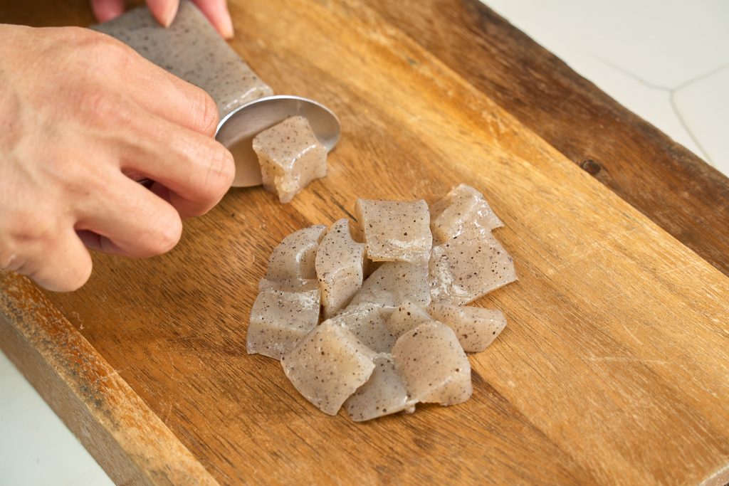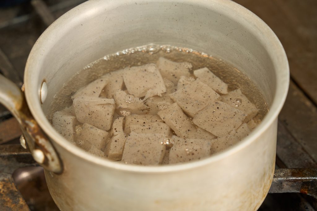 - こんにゃくを一口大にカットするかスプーンでちぎり、灰汁抜きのため2~3分茹でる。